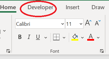 נחזור למסך האקסל ושם יופיע תפריט המפתחים באמצעותו נוכל לכתוב קוד vba.