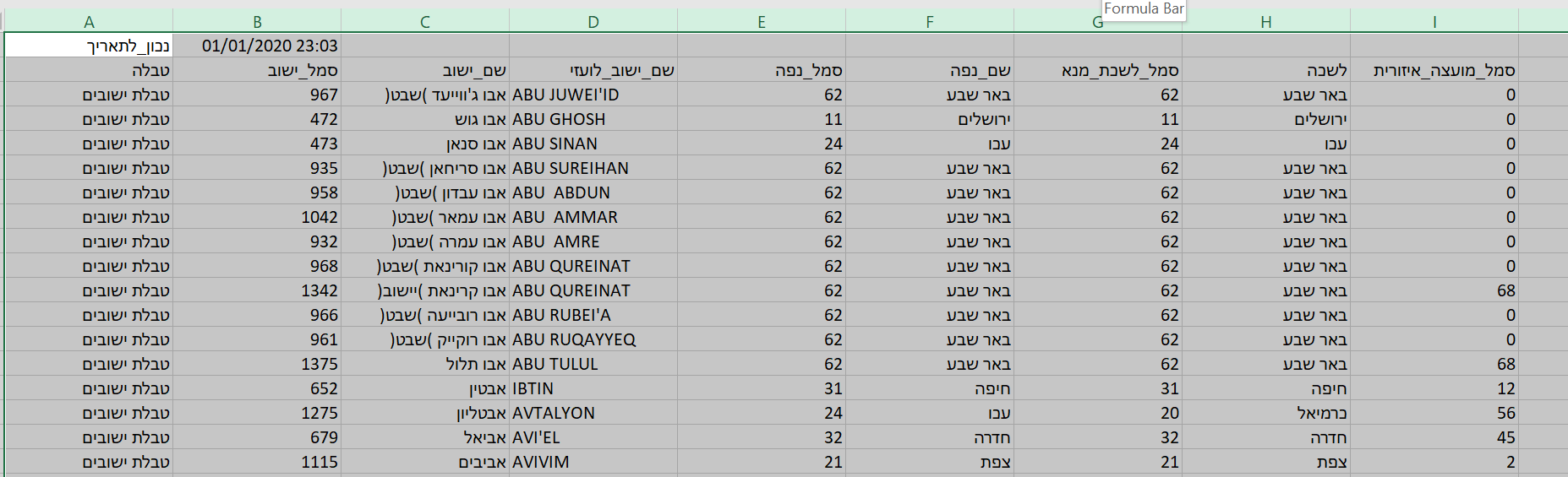 נניח שיש לנו טבלה של ישובים ואנו רוצים לדעת כמה ישובים ברשימה משויכים למועצה מקומית: