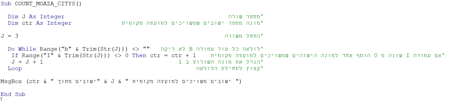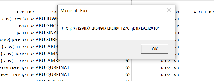 במידה וכן נקדם את המונה ב 1 , לבסוף נקבל הודעה שתפרט כמה ישובים נמצאו משויכים למועצה אזורית.